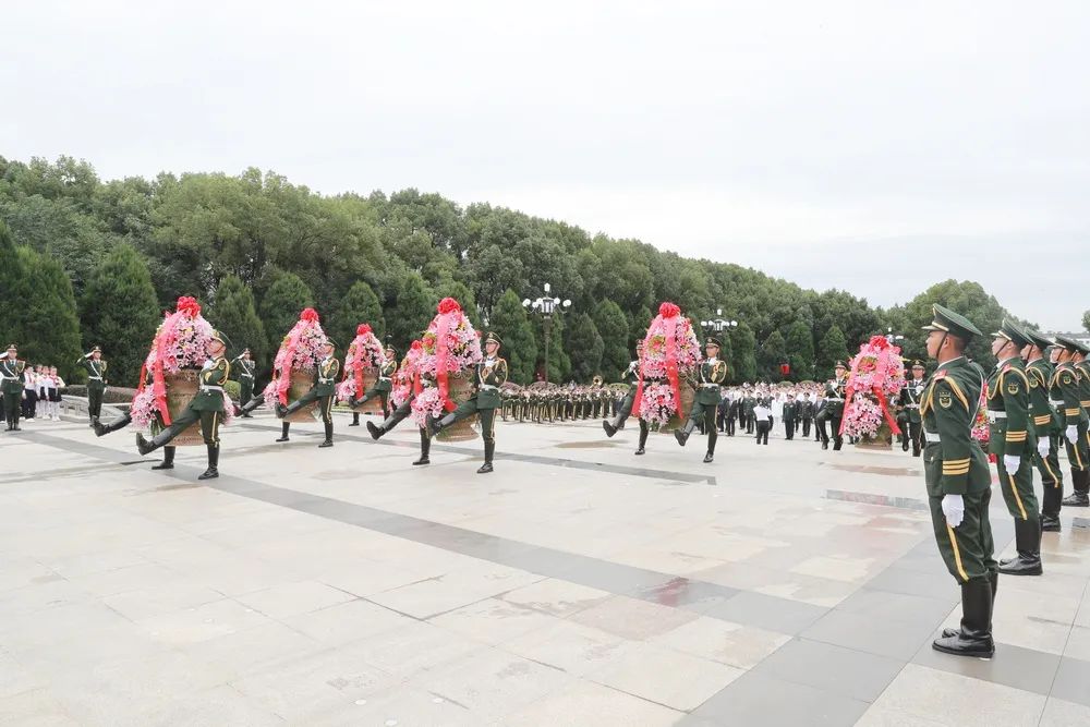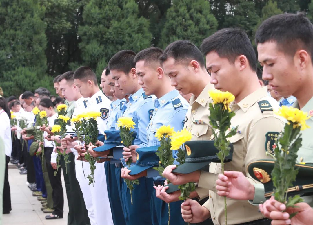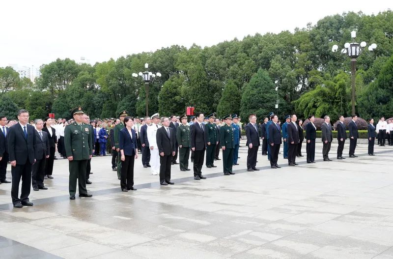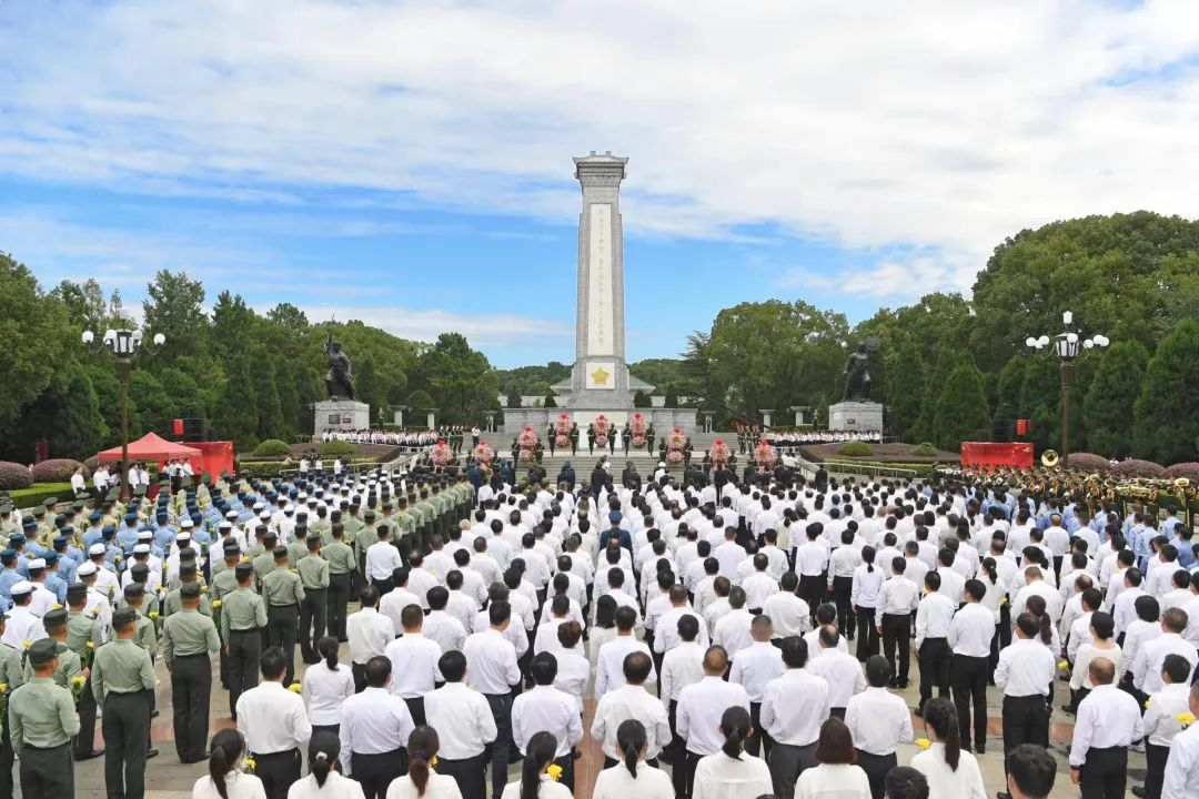 蒼松翠柏掩映的紀念園廣場內,鮮艷的五星紅旗迎風飄揚,革命烈士紀念碑巍然聳立。省領導與老戰士、烈屬、勞模、先進人物和駐鄂部隊官兵、機關干部、學生等各方面代表,面向紀念碑列隊肅立,現場莊嚴肅穆。