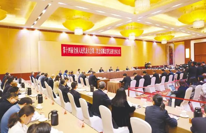 3月6日下午,十四屆全國人大二次會議湖北代表團舉行全體會議,審查計劃報告和草案、預算報告和草案,繼續審議政府工作報告,并向中外媒體全程開放。省委副書記、省長、代表團副團長王忠林在會上作審議發言,并向中外記者介紹了湖北經濟社會發展情況。