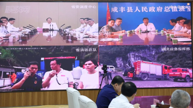 7月1日下午,省委書記、省人大常委會主任王忠林到省委應急指揮視頻調度中心,連線咸豐縣應急指揮部和救援現場,詳細了解救援進展情況,就加快推進被困人員救援工作進行緊急調度指揮,并對做好咸豐縣防汛搶險救災工作作細化部署。在聽取省應急管理廳、省消防救援總隊、省水利廳等部門情況匯報后,王忠林強調,災情就是命令,時間就是生命。要組織最精干力量,全力救援被困人員,克服困難、科學施救,盡快穩妥把被困人員救出,并嚴防次生災害。要全力做好咸豐縣受災群眾安置工作,用心用情保障受災群眾生活。要全力恢復當地生產生活設施,加快電力、通信設施搶修搶通。要全力做好道路修復工作,盡快恢復受損道路。全省各地有關部門要認真貫徹落實習近平總書記關于防汛救災工作的重要指示精神,堅持人民至上、生命至上,全力應對極端天氣,堅決克服麻痹思想、僥幸心理,扎實做好險堤險壩除險加固、地質災害防范應對等工作,提前預置力量物資,加強預警叫應,切實筑牢保障人民群眾生命安全的堅固防線。