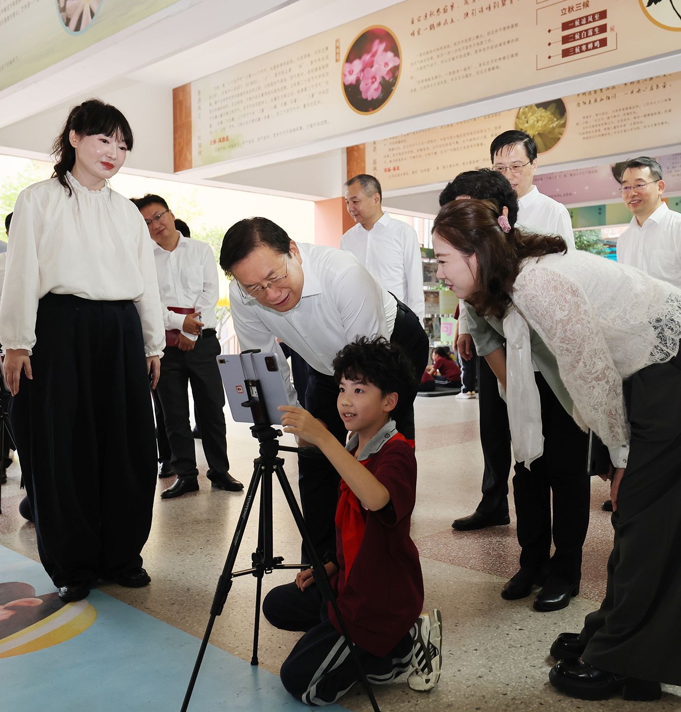 王忠林來到武昌區珞珈山小學,先后走進體育課堂、智慧教室,了解學校體育教育、人工智能教育開展情況,并與學生親切交流;步入位于校園中央的勞動實踐基地,察看學生們在“希望的田野”上開展“稻作農耕”的情況;聽取學校教學設施、師資配備等情況介紹,對學校豐富的教學內容、趣味化智能化生態化的教學方式表示肯定。隨后,王忠林來到教師辦公室,看望正在備課的老師,與他們親切交談并致以節日祝賀,關切詢問他們的工作、生活情況。他說,教育大計,教師為本。老師在教育事業發展中具有基礎性作用。當老師很辛苦、也很光榮,“桃李不言,下自成蹊”。希望大家自覺扛起辦好人民滿意教育的重大責任和使命,不斷提高教書育人本領,當好孩子們健康成長的引路人,努力把學校辦成基礎教育的典范,為國家教育事業發展作出更多更大更好的貢獻。