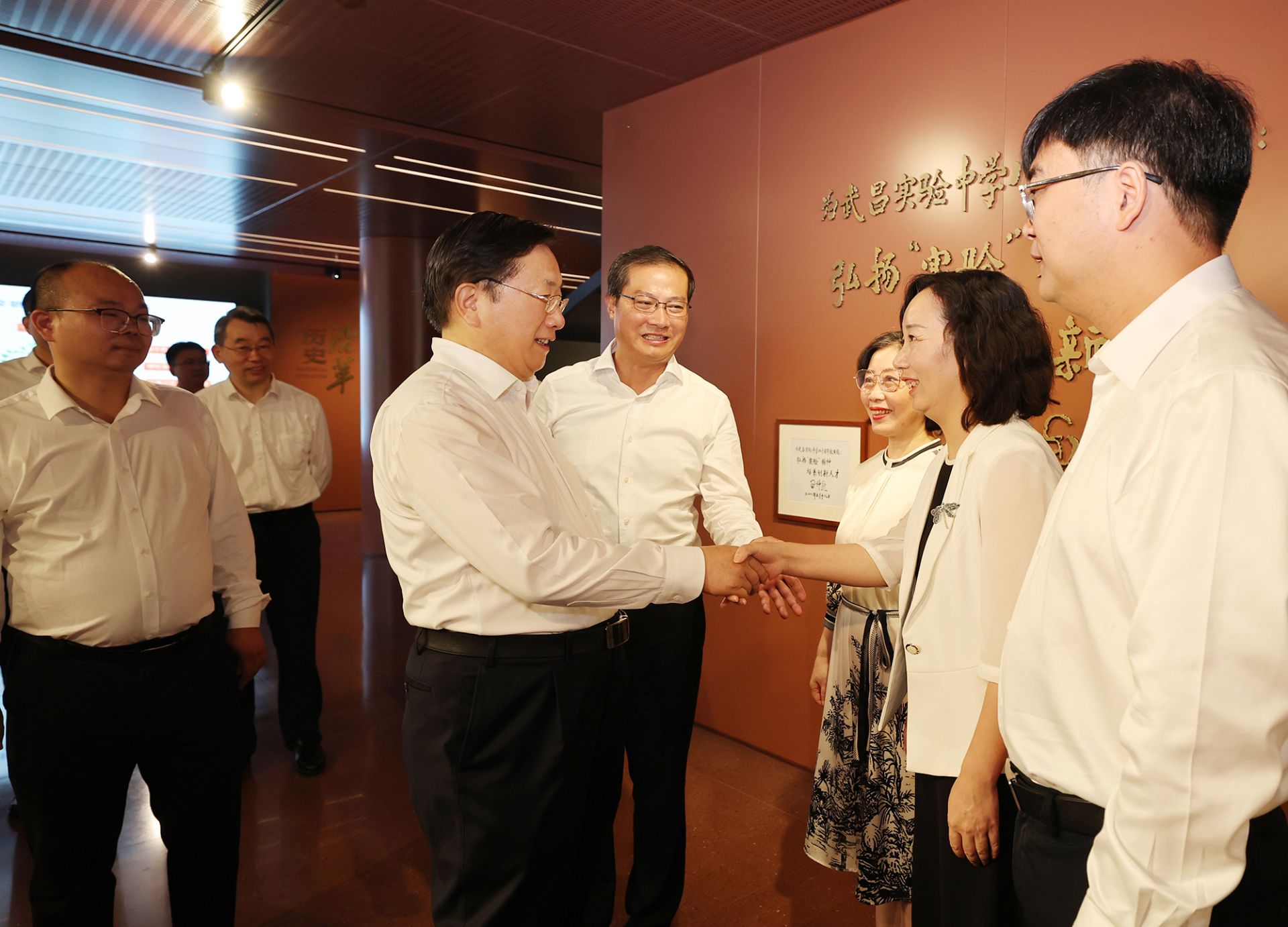 湖北省武昌實驗中學創辦于1920年,是湖北最早以“實驗”命名的百年名校,是我省首批重點中學、省級示范高中。王忠林認真察看校園環境,參觀校史館、明遠樓和“惟楚有材”牌樓,仔細了解學校歷史沿革和辦學情況,對學校弘揚“實驗”精神培養創新人才、努力探索一流育人模式取得的成就表示肯定。王忠林與學校教師代表一一握手,向他們致以節日問候,對他們為教育事業發光發熱、傾心傾力付出表示感謝。他說,習近平總書記高度重視教育工作,近日專門回信勉勵全國特崗教師代表,提出殷切希望,為我們進一步辦好教育提供了根本遵循。百年大計,教育為本。希望老師們牢記習近平總書記殷殷囑托,始終按照德智體美勞全面發展的目標要求,發揚奉獻精神,扎根三尺講臺,潛心教書育人,努力把學校辦得越來越好,為國家培養更多堪當時代重任的棟梁之材。