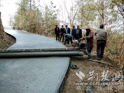 圖為:澆灌水泥路面。(通訊員 張云朝 攝)
