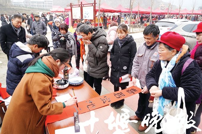秦楚網訊(十堰晚報)文、圖/記者 韓玉硯 劉仲黎 見習記者 張燃 呂超 報道:1月12日,以“走進美麗鄉村 購買地道年貨 體驗特色民俗”為主題的十堰市第四屆旅游年貨節,在鄖西縣澗池鄉下營村火熱舉行。12日—13日,來自十堰城區及周邊地區的眾多游客,在鄖西縣澗池鄉下營村、房縣化龍堰鎮高橋村、竹山縣寶豐鎮龍井村三地旅游年貨節現場,賞美景、品美食、購特產……提前感受年味兒。