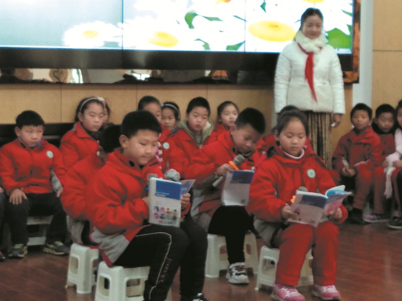 采訪中,記者發(fā)現(xiàn)該校少先隊(duì)活動(dòng)室正在舉行三年級(jí)主題班會(huì)課展演;二(6)班學(xué)生正在音樂(lè)室學(xué)唱校歌;閱讀室里,伴著優(yōu)揚(yáng)的輕音樂(lè),四年級(jí)兩個(gè)班級(jí)近百名孩子正在閱讀……第三節(jié)課間,上完心理沙盤課的幾名孩子又好奇地趕到心理咨詢室,體驗(yàn)愛(ài)心抱抱熊和吶喊器,三(3)班的李嚴(yán)炎體驗(yàn)后,開(kāi)心地說(shuō):“很神奇,很有趣!”