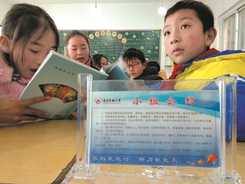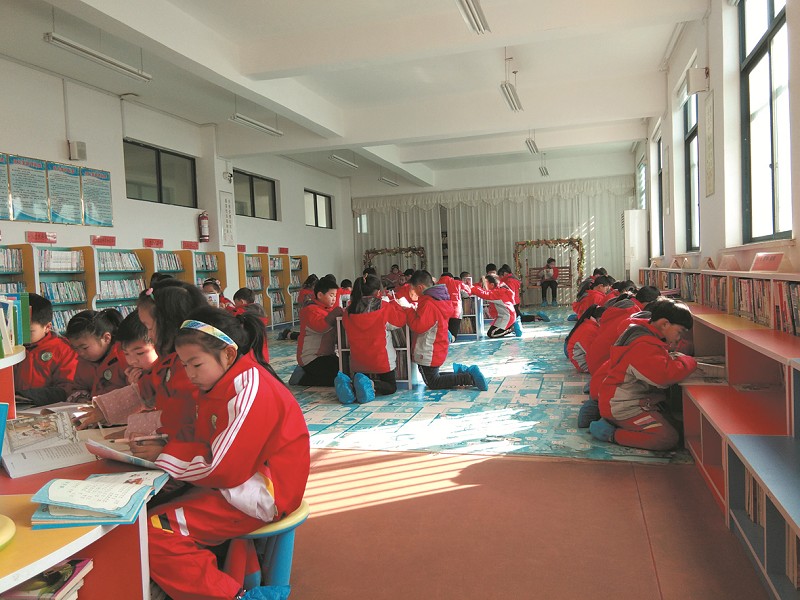 房縣東城小學(xué)的學(xué)生在圖書閱覽室讀書。