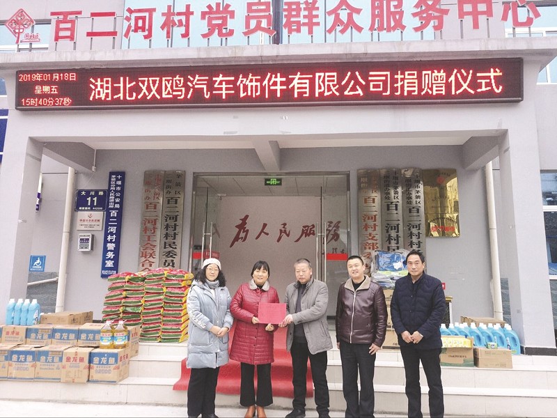 1月18日下午,茅箭區人大代表、湖北雙鷗汽車飾件股份有限公司董事長楊耀山來到茅箭區二堰街辦百二河村黨群服務中心,為該村捐贈價值2萬元的生活用品,用于困難群眾生產生活。通訊員盛艷波肖梅攝
