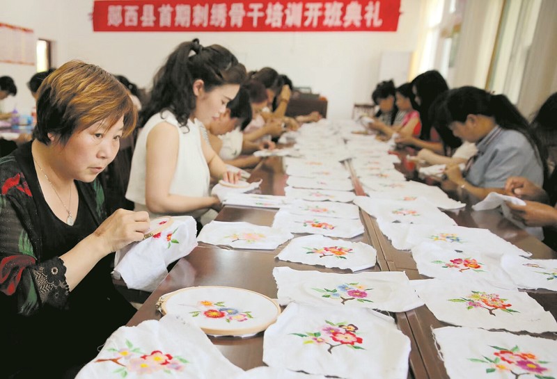 首期刺繡骨干培訓(xùn)班學(xué)員正在練習(xí)手工刺繡