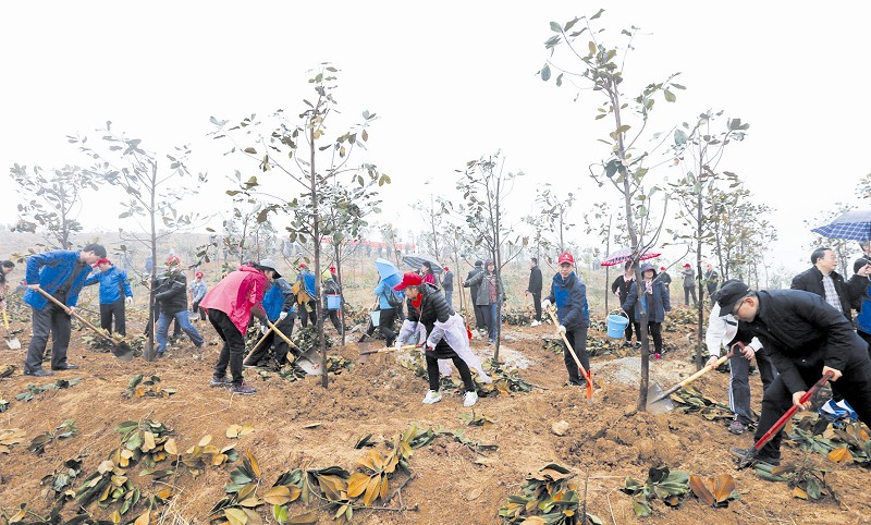 我市干部群眾參加義務植樹活動。記者劉旻攝