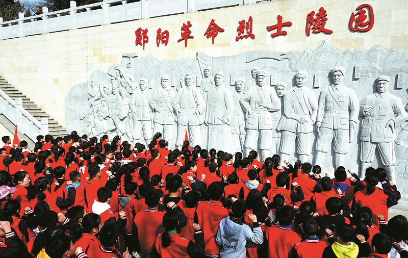 4月1日,鄖陽區新區小學學生在鄖陽革命烈士陵園莊嚴宣誓。連日來,我市社會各界干部群眾紛紛來到鄖陽革命烈士陵園緬懷革命先烈,接受紅色教肓。