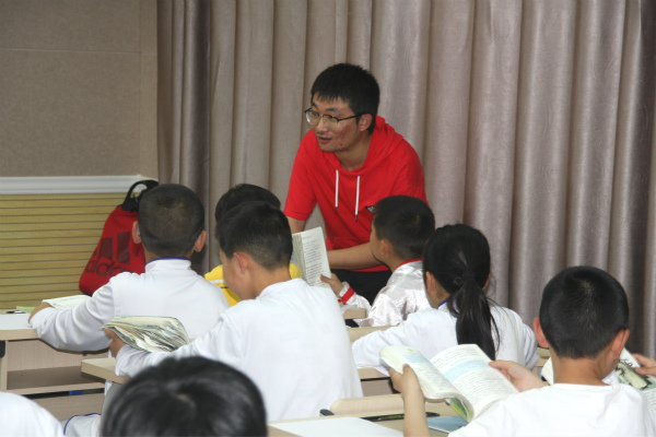 圖為:金頂街二小劉鵬路老師上整本書導讀課 程時書 攝