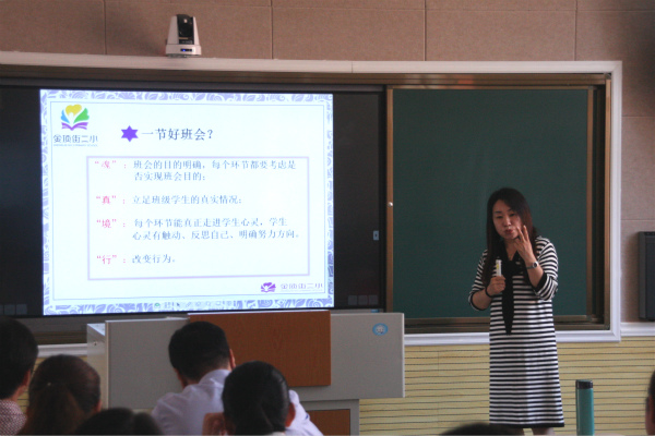 圖為:金頂街二小教師分享《班會課設計理念、思路》 程時書 攝