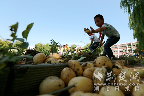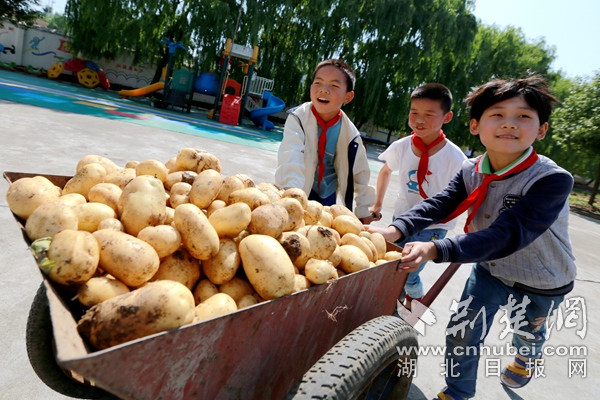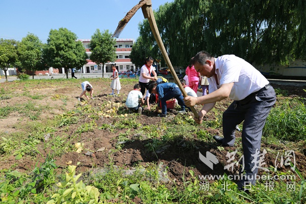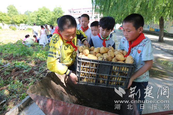 荊楚網客戶端—荊楚網消息(通訊員朱本雙、王坤) “我喜歡吃土豆,因為好吃!”“我喜歡吃土豆,因為有營養!”6月4日,在竹山縣寶豐鎮曹家灣小學“紅領巾菜園”里,師生扛著鋤頭,拿著筐子,來到土豆種植區,喜氣洋洋地挖著土豆。據悉,今年土豆有1000多公斤,又是一個土豆豐收季。