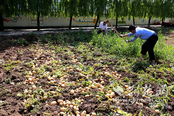 教師挖土豆。通訊員 朱本雙 攝