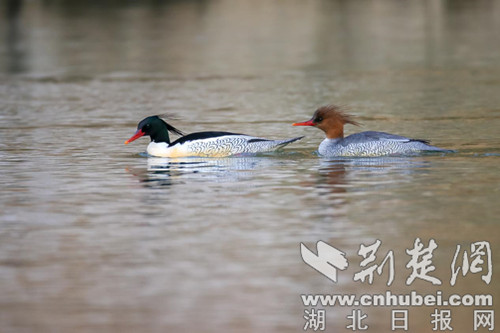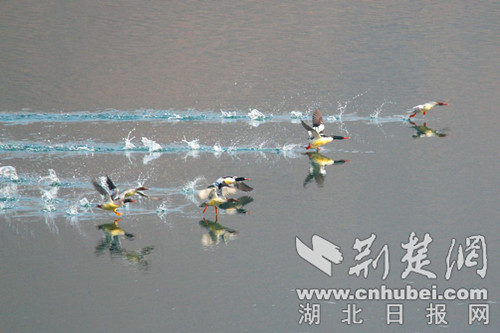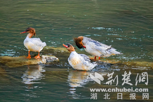 荊楚網(wǎng)(湖北日?qǐng)?bào)網(wǎng))訊(通訊員 賈庚春)近日,被譽(yù)為“鳥中大熊貓”的中華秋沙鴨現(xiàn)身湖北省十堰市鄖西縣天河之畔,這已中華秋沙鴨第6年飛抵鄖西。中華秋沙鴨喜歡棲息于河水清澈、有激流淺灘及魚類資源豐富的河流,對(duì)水質(zhì)的要求極高,是第三紀(jì)冰川末期遺留下來的古老物種、距今已有一千多萬年,是中國(guó)特產(chǎn)稀有鳥類,國(guó)際自然保護(hù)聯(lián)盟紅色名錄瀕危物種,屬國(guó)家一級(jí)重點(diǎn)保護(hù)動(dòng)物,數(shù)量極其稀少。如今,隨著生態(tài)環(huán)境的持續(xù)向好,鄖西已成為越來越多的鳥類棲息天堂,難得一見的中華秋沙鴨也頻頻亮相。