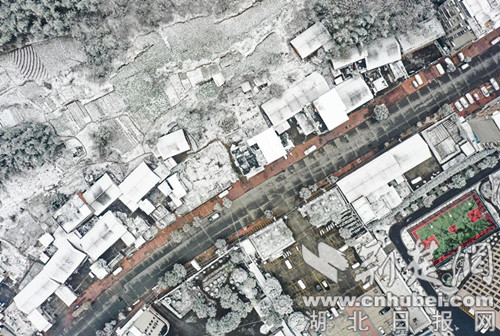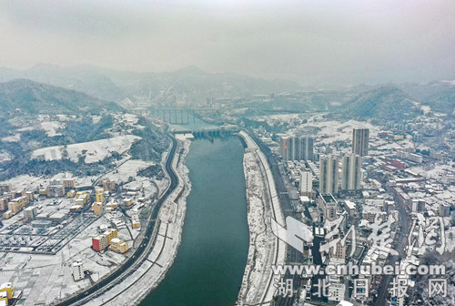荊楚網(湖北日報網)訊(通訊員 王俊)12月25日,竹山迎來2021年第一場大雪,紛紛揚揚的冬雪,讓秀美竹山銀裝素裹。從空中俯瞰,變身冰雪世界,雪韻惹人陶醉。