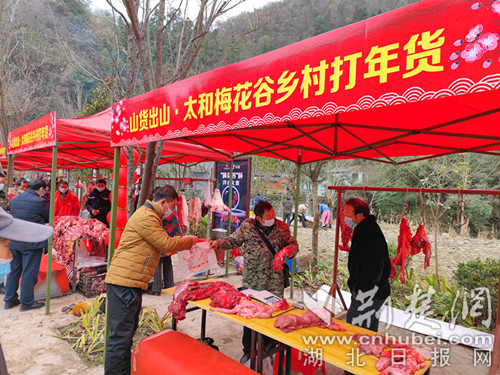 太和梅花谷旅游區(qū)鄉(xiāng)年貨趕集現(xiàn)場。通訊員供圖