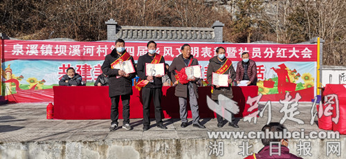 荊楚網(湖北日報網)訊(通訊員 付延峰 熊大為)1月11日,竹溪縣泉溪鎮壩溪河村廣場上熱鬧非凡,原來是該村召開第四屆鄉風文明表彰暨社員分紅大會。