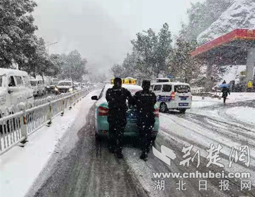 荊楚網(wǎng)(湖北日報網(wǎng))訊(通訊員 戴飛)1月22日16時40分許,巡邏四大隊五堰警務(wù)站民警巡邏至天津路時,因雪天路滑,路面結(jié)冰,多輛車輛無法正常行駛,停在路中央,嚴重影響交通安全暢通,五堰警務(wù)站巡邏民警主動作為,積極幫助多輛車輛脫困,保證了道路交通安全暢通,贏得了司機朋友的高度贊譽