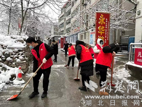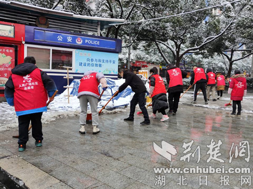 荊楚網(湖北日報網)訊(通訊員 賀富虎、袁芳)2月7日,十堰張灣區車城路街道機關黨員干部、社區工作者及村干部、下沉黨員、熱心群眾等近800志愿者紛紛來到街頭、小巷、小區,開展“掃雪除冰”志愿服務活動,確保群眾出行安全和出行方便,早8:00開始,轄區內隨處可見“雪地紅”志愿者。