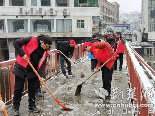 據了解,2月6日,十堰地區飄灑起了雪花。車城路街道新時代文明實踐所根據天氣預警,于6日下午就通知全體機關干部深入到聯系村、社區,指導和組織開展掃雪除冰志愿服務活動,以村、社區為單位,對轄區內橋面、坡路、臺階、人行橫道等易打滑、結冰部位進行掃雪除冰。