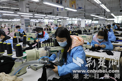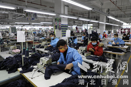 “公司于2月7日正式開工,在做好日常疫情防控措施的情況下,公司1000余名員工已全部到崗,超過30條各類產線保持滿負荷,每天產量達到30000件左右。”湖北嘉麟杰服飾有限公司董事長楊軍欣說,為沖刺一季度“開門紅”,公司開足馬力搞生產,加大力度開拓市場,為縣域經濟發展作貢獻。