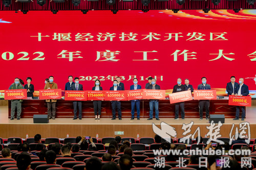 荊楚網(湖北日報網)訊(通訊員 劉愛理)3月14日上午,十堰經濟技術開發區召開2022年工作大會,對易捷特新能源汽車有限公司、十堰松林工貿有限公司、十堰東風采埃孚減振器有限公司、湖北十堰先鋒模具股份有限公司等153家產值突破企業、隱形冠軍企業、內外貿突出貢獻企業等進行獎勵,獎勵總金額達到2477.4萬元。