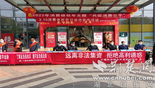 荊楚網(湖北日報網)訊(通訊員 劉愛理 高楊)3月15日是消費者權益保護日。十堰經開區處非辦在祥安廣場開展“遠離非法集資,拒絕高利誘惑”為主題的防范非法集資宣傳活動,推進防范非法集資常識的普及化、常態化、多樣化,深化轄區居民對非法金融活動的認識,強化風險辨別能力和防范意識。
