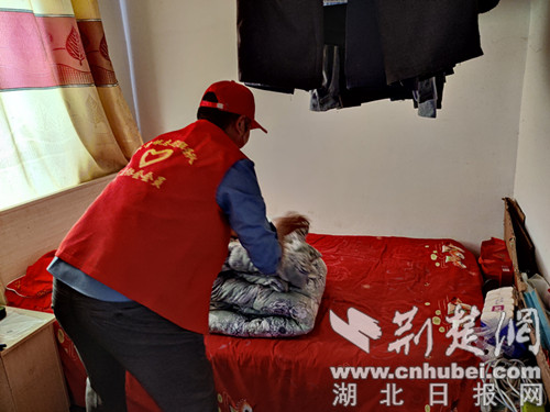 公益協(xié)會成員入戶幫助獨居五保戶更換被褥。通訊員供圖