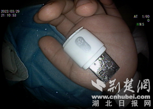 荊楚網(湖北日報網)訊(通訊員 馬婷婷、龍菲)近日,十堰市一名4歲幼兒就因為好奇把一枚U盤吞進了肚子,幸好家長發現及時,第一時間送到十堰市人民醫院,并在消化內鏡中心專家的幫助下,用內鏡下異物取出術小心取出U盤,避免了異物滯留給孩子身體帶來更大傷害。