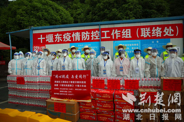 捐贈儀式上,十堰東高速路卡口、十堰火車站北廣場一線防疫人員接受愛心企業捐贈醫用口罩4000個、礦泉水100箱等防疫和生活物資。一箱箱的愛心物資,不僅體現了企業的社會責任擔當,更彰顯了眾志成城、攜手筑牢疫情防線的堅定信念,以實際行動,在疫情防控中詮釋了互助精神。