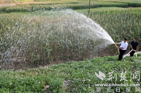 和溢水鎮一樣,目前,該縣12個鄉鎮農作物因干旱受災面積22萬畝,成災面積4萬畝。面對當前的旱情形勢,竹山縣農業農村局組織4個工作專班,配備抗旱設備275臺套,出動100余名農技人員下到田間地頭分類分產業指導抗旱災,查旱情、找水源、架泵抽水,與旱魔進行搏斗,盡量減少群眾損失。