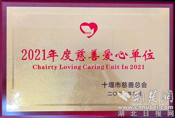十堰市審計局榮獲“2021年度十堰市慈善愛心單位”。通訊員供圖