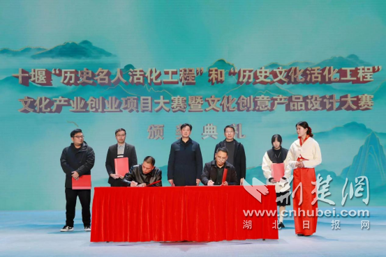頒獎典禮上,十堰文旅體投資發展集團與6家文創企業簽署了合作協議,將對優質文化產業項目和文化創意產品進行深度合作開發,切實推動活化轉化落地,成為市場認可的高品質文化旅游產品。
