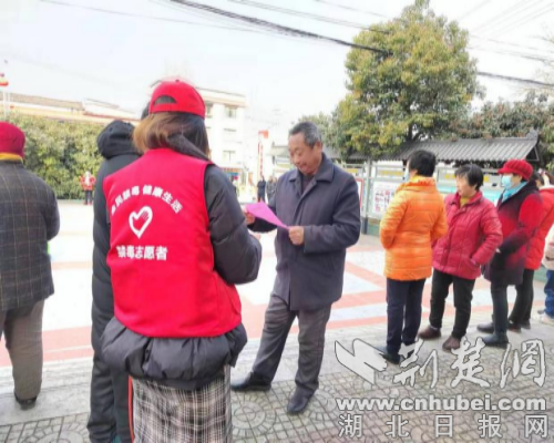 志愿者給群眾們發(fā)放宣傳資料。通訊員 供圖