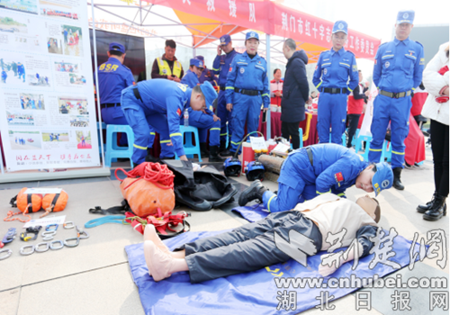 荊門市藍天救援隊現場為群眾展示急救知識培訓。通訊員 供圖