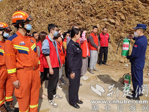宣傳人員教授滅火器使用技巧。通訊員 供圖