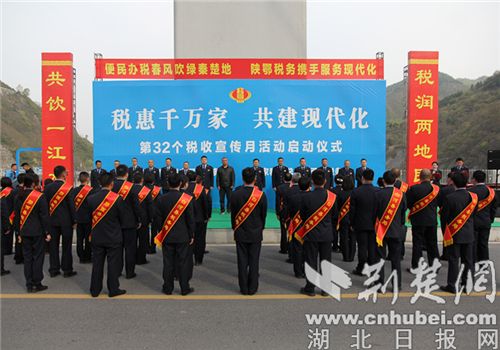 荊楚網(wǎng)(湖北日?qǐng)?bào)網(wǎng))訊(通訊員 謝立棚、董杰)3月31日,鄖西縣稅務(wù)局與白河縣稅務(wù)局以“稅惠千萬(wàn)家、共建現(xiàn)代化”為主題,在湖北、陜西兩省交界處——白鄖漢江大橋聯(lián)合舉辦了全國(guó)第32個(gè)稅收宣傳月啟動(dòng)儀式。