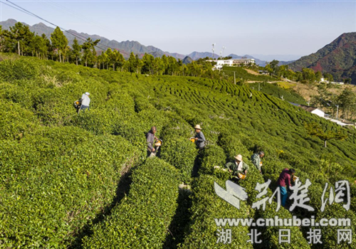 荊楚網(wǎng)(湖北日?qǐng)?bào)網(wǎng))訊(通訊員 程麗、王澳)4月11日,走進(jìn)十堰市鄖西縣槐樹(shù)林特場(chǎng)800畝有機(jī)茶園,隨處可見(jiàn)的茶樹(shù)蒼翠欲滴,嫩綠的新芽也在枝頭迎風(fēng)萌動(dòng),采茶工人忙碌的身影在茶園中穿梭著。