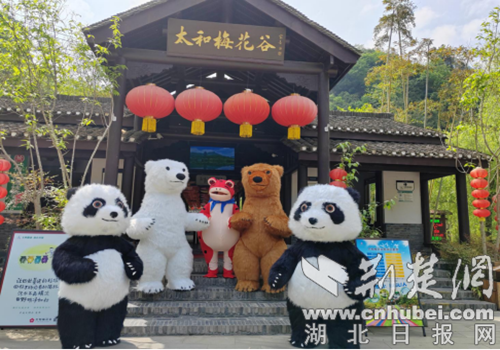 在該縣太和梅花谷旅游區,筆者看到,景區正在對新增設的卡通萌寶游園項目進行排演,竹瀟瀟、大白兔、小青蛙等卡通吉祥物憨態可掬,“五一”期間,將正式與游客見面并展開互動。
