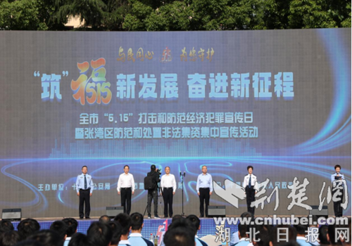 荊楚網(湖北日報網)訊(通訊員 趙偉)為提高廣大群眾識騙防騙意識和能力,形成全民動員、全民參與、共同抵制各類非法集資經濟犯罪活動的社會氛圍。5月15日上午,十堰市公安機關在六堰人民廣場舉行“與民同心 · 為您守護”全市防范和打擊非法集資志愿宣傳活動啟動儀式。副市長、公安局長董奇峰現場講話并宣布活動啟動。