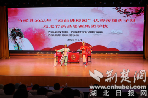 荊楚網(湖北日報網)訊(通訊員 李偉)5月17日,十堰市竹溪縣2023年“戲曲進校園”優秀傳統折子戲走進該縣思源集團學校。