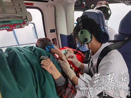 接到求助電話后,十堰人醫院長孫澤群立即啟動直升機空中轉運預案。航空救援科主任郭文萍迅速通知醫護人員和中航材航空救援十堰備勤機組做好起飛準備。9時09分,直升機從健康廣場起飛;9時32分,直升機在丹江指定位置著陸;9時38分,直升機再次起飛,9時58分順利返院,原本單程需要3個多小時的地面轉運,十堰人醫直升機單程僅耗時20分鐘,為患者贏得了寶貴的救治時間。