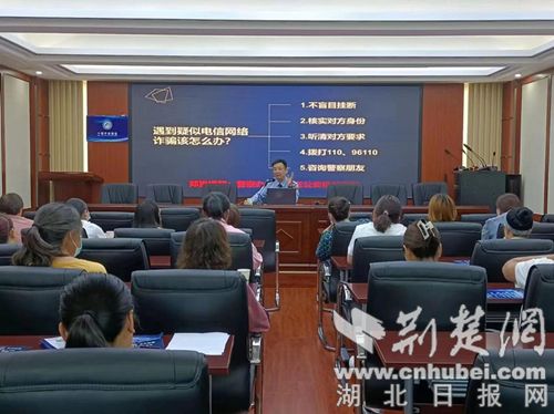 荊楚網(湖北日報網)訊(通訊員 周龍健)針對近期電詐警情呈現反彈趨勢,為提搞轄區群眾的防騙、識騙能力,近日,十堰市張灣區黃龍鎮聯合黃龍派出所舉行反詐活動,開展“守護巾幗力量”為主題的反詐宣傳活動,活動主要針對轄區女性個體工商戶和企業老板進行反詐宣講授課。