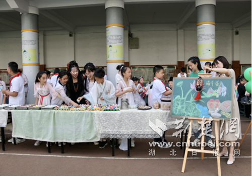 荊楚網(wǎng)(湖北日報網(wǎng))訊(通訊員 陳夢園、朱惟佳)6月14日下午,十堰市實(shí)驗(yàn)小學(xué)五年級600余名師生參與,2000余名學(xué)生觀摩了“仲夏賦雅趣 粽香端午情”主題活動,旨在激勵學(xué)生了解中國傳統(tǒng)節(jié)日端午節(jié)的來源、習(xí)俗、意義和價值,傳承中華傳統(tǒng)文化,培養(yǎng)學(xué)生勞動意識和能力,提升學(xué)生文化內(nèi)涵,落實(shí)學(xué)校“立德樹人”根本任務(wù)。茅箭區(qū)教育局教育股王俊棋、茅箭區(qū)“中華傳統(tǒng)文化德育協(xié)作體”成員學(xué)校21名教師代表受邀參加本次活動。