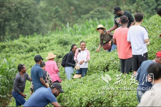 華中科技大學(xué)留學(xué)生們來到竹山護(hù)駕明家灣茶園,現(xiàn)場體驗采茶。通訊員供圖