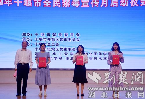活動中,市禁毒辦向湖北汽車工業(yè)學院、湖北醫(yī)藥學院、漢江師范學院、湖北工業(yè)職業(yè)技術(shù)學院4所在堰高校學生代表授予“大學生禁毒志愿者服務(wù)隊”隊旗。大學生志愿者代表進行了禁毒宣誓,向廣大人民群眾和青少年學生發(fā)出“識毒、拒毒、禁毒”的倡議。現(xiàn)場播放了禁毒公益宣傳片,同時向全市毒品預(yù)防教育先進集體和先進個人頒發(fā)了證書。