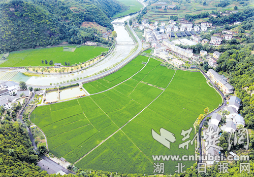 鄖西縣關防鄉沙溝村田園風光與村舍相映,構成一幅美麗畫卷。鄖宣文 攝