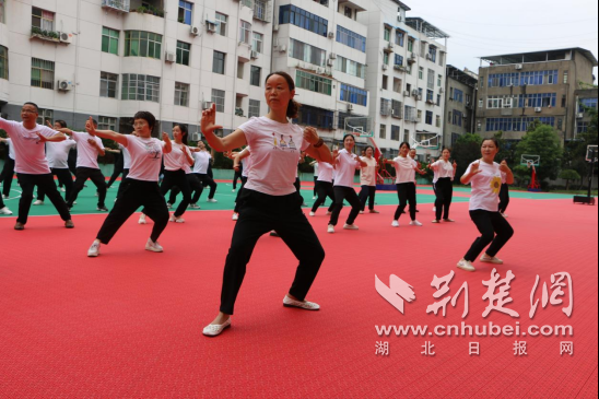 8月8日是我國第15個“全民健身日”,次日上午,竹溪縣教育局、審計局在該縣青少年活動中心籃球場以“全民健身繪就美好生活”為主題聯合開展八段錦工間操展演。