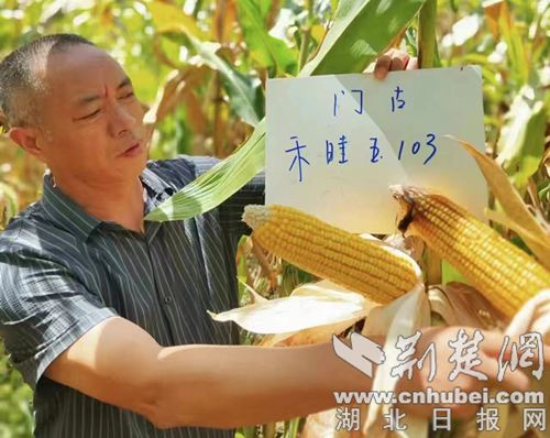 荊楚網(湖北日報網)訊(通訊員 鄒戰寰)金燦燦的玉米粒顆顆飽滿,猶如一顆顆金豆子一般。“這試驗種植的玉米果穗長得規矩、路子直、顆粒大、滿尖。每畝地目測感覺應該比之前的品種多出個200斤到300斤左右。”十堰市房縣門古寺鎮葉家河村村民何立海向筆者講述面前這片玉米新品試驗示范地的收成情況。