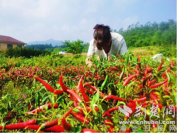 據(jù)了解,小坪村積極引進(jìn)市場(chǎng)主體,流轉(zhuǎn)100多畝土地,通過(guò)“黨支部+公司+基地+農(nóng)戶”的方式發(fā)展辣椒產(chǎn)業(yè),群眾在領(lǐng)取租金的同時(shí)又能務(wù)工增收。“今年雨水充足,收成很好,預(yù)計(jì)產(chǎn)值70萬(wàn)余元。吸收了務(wù)工人員30人。我們的辣椒有固定的客戶和市場(chǎng),辣椒采摘完以后一部分烘干銷往四川,一部分鮮辣椒發(fā)往襄陽(yáng)、武漢等地。”基地負(fù)責(zé)人李代平說(shuō)。